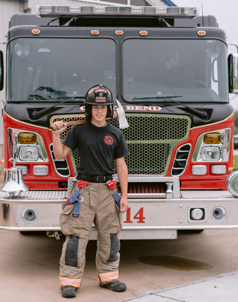 Before he zeroed in on being a firefighter, he also became interested in law enforcement as well as being an EMT. So, he signed up for ride-a-longs with local agencies for all services, and after helping work a small grass fire on his law enforcement ride-a-long, he knew his true passion was to fight fires.