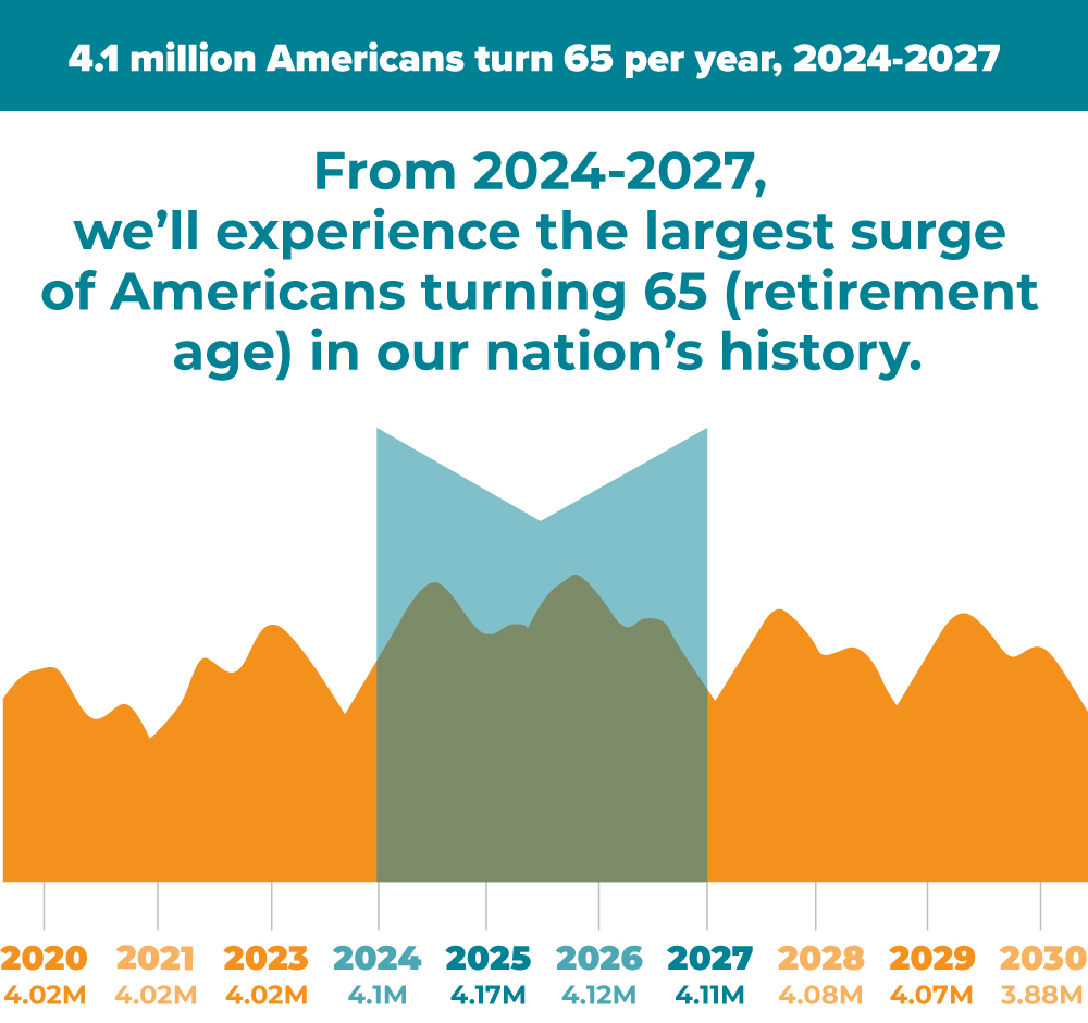 4.1 million Americans turn 65 per year, 2024-2027