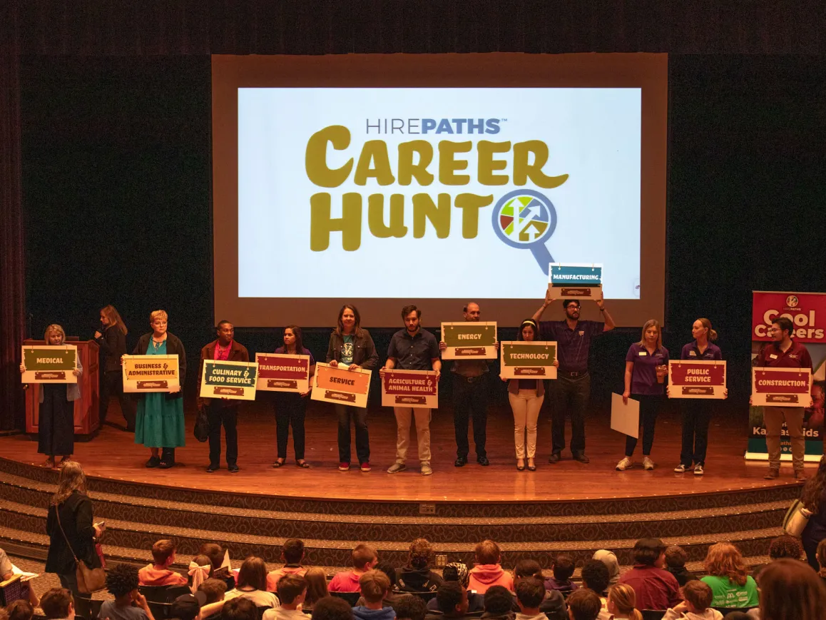 HirePaths introduces young people and their families to high-demand jobs that will keep them in Kansas. We’re looking to partner with communities to host live events promoting career exploration. Career Hunts are half-day events designed to introduce young people in grades 5 through 9 to high-demand jobs in your local region. Together!