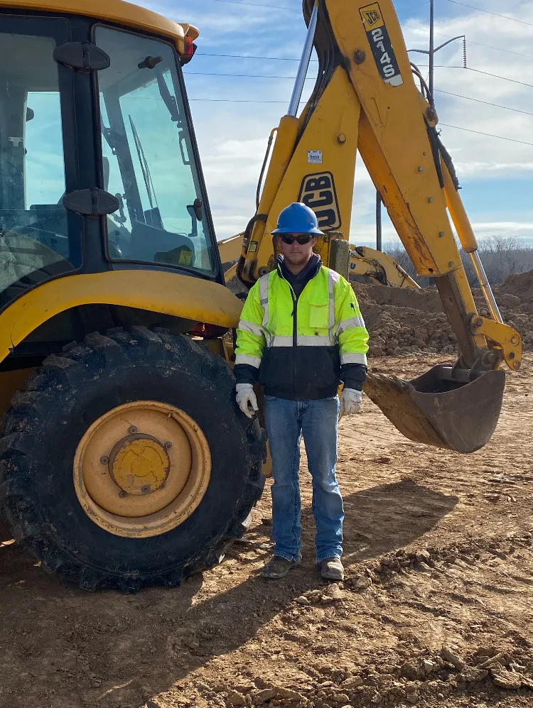 Today, I’m a heavy equipment operator at Bayer, which means I run an excavator or wheel loader. I’m on a utility crew, so for the most part we build water lines, sanitary sewer lines and storm sewers for new developments. I also get down in the ditch and help out whenever that’s needed. There’s a lot of variety. Sometimes I put down soil at the end of a project, to get things finished up and looking nice. I’ve also gotten to tear down houses, too. That’s kind of fun — to be able to destroy something and not get in trouble for it!