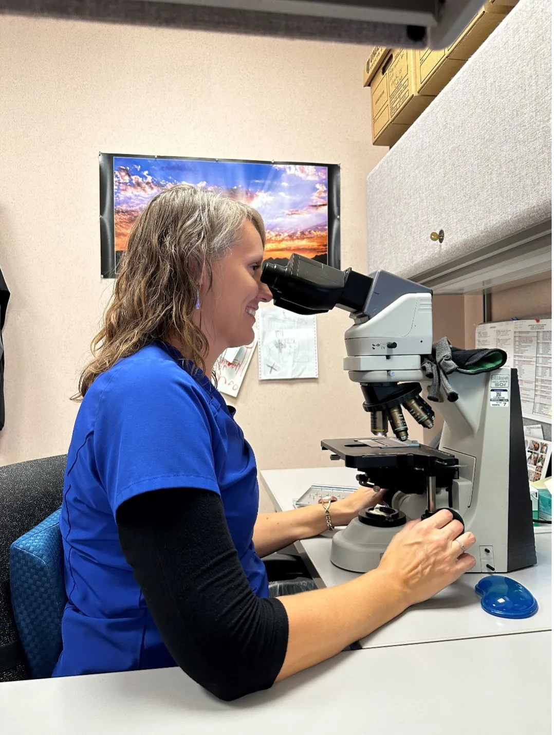 Now, I’m a cytotechnologist at Stormont Vail Health Center. I look at cells under a microscope to search for anything that looks off or not normal. These abnormalities could be cancerous or could cause patients harm. I also help clinicians during different procedures to make sure everything is done as well as possible and to help us have what we need back in the lab.